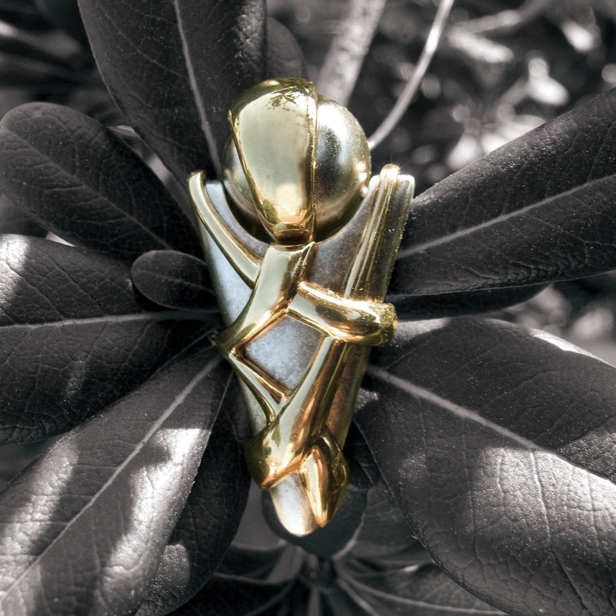Il gioiello per me va pensato sul corpo, non dentro una bacheca o su un piedistallo, perché dovrà vivere in sinergia e simbiosi con esso. Il mondo dell’oreficeria può apparentemente somigliare alla scultura, ma ha dogmi diversi e totalitari: un gioiello deve poter essere portato con naturalezza, non deve creare impedimenti, deve risultare un prolungamento estetico del struttura fisica e della mente di chi lo indossa.